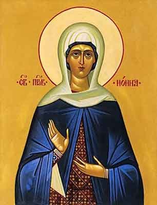 Iată modelul de soție, care aproape o viață s-a rugat cu lacrimi și cu răbdare pentru întoarcerea soțului ei la credința cea dreaptă. Iar aceasta a făcut-o cu iubire, căci „cu sârguință se afierosea pe sine soțului ei, înrâurindu-l în multe feluri, cu mustrări și povețe, arătându-i deosebită grijă ori răcindu-se față de el”, și nu cu ceartă, ci „mai mult decât toate l-a câștigat prin însăți firea ei”.