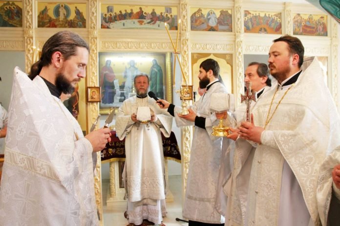Înainte de începerea Sfintei Liturghii, Vlădica Vladimir a săvârșit slujba de sfințire a prestolului. A urmat Sfânta Liturghie, în cadrul căreia Arhipăstorul dimpreună cu clericii și credincioșii au înălțat rugăciuni de mulțumire către Împăratul Ceresc pentru Milele Sale cele bogate.
